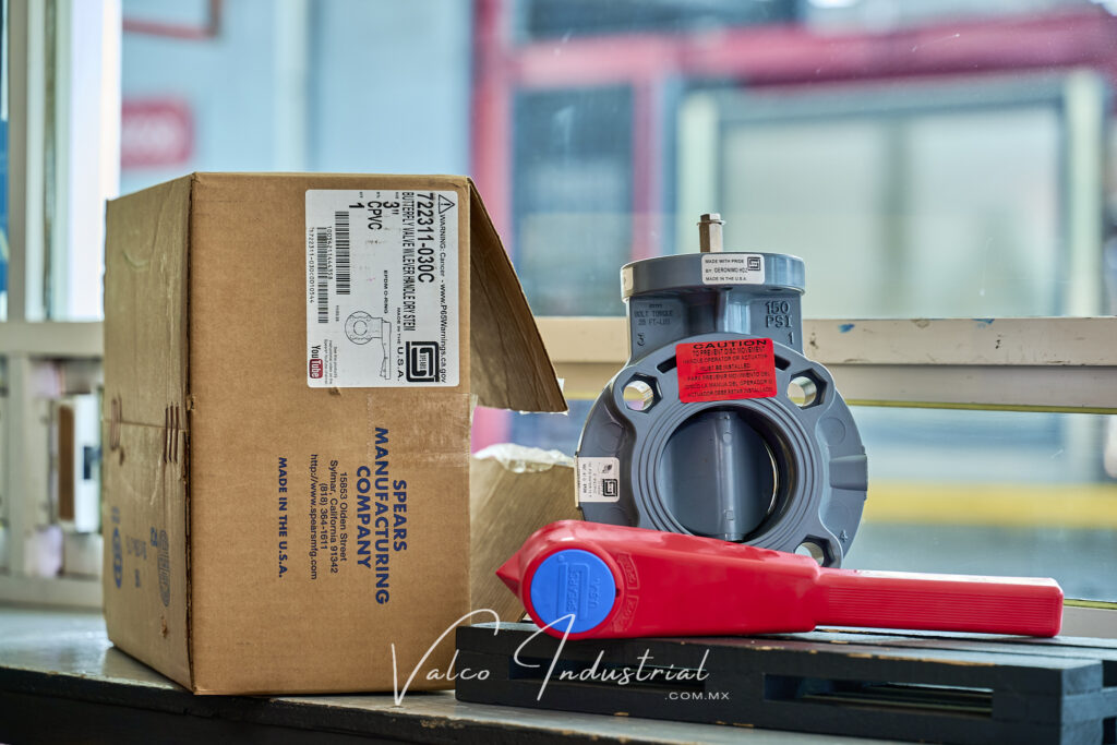 Spears® Manufacturing Company. CPVC Butterfly Valves, Lever Handle Style, Pressure Rating @ 73°F (23°C), Water 1-1/2″ – 12” 150 psi. Maximum Service Temperature 200°F (93°C).